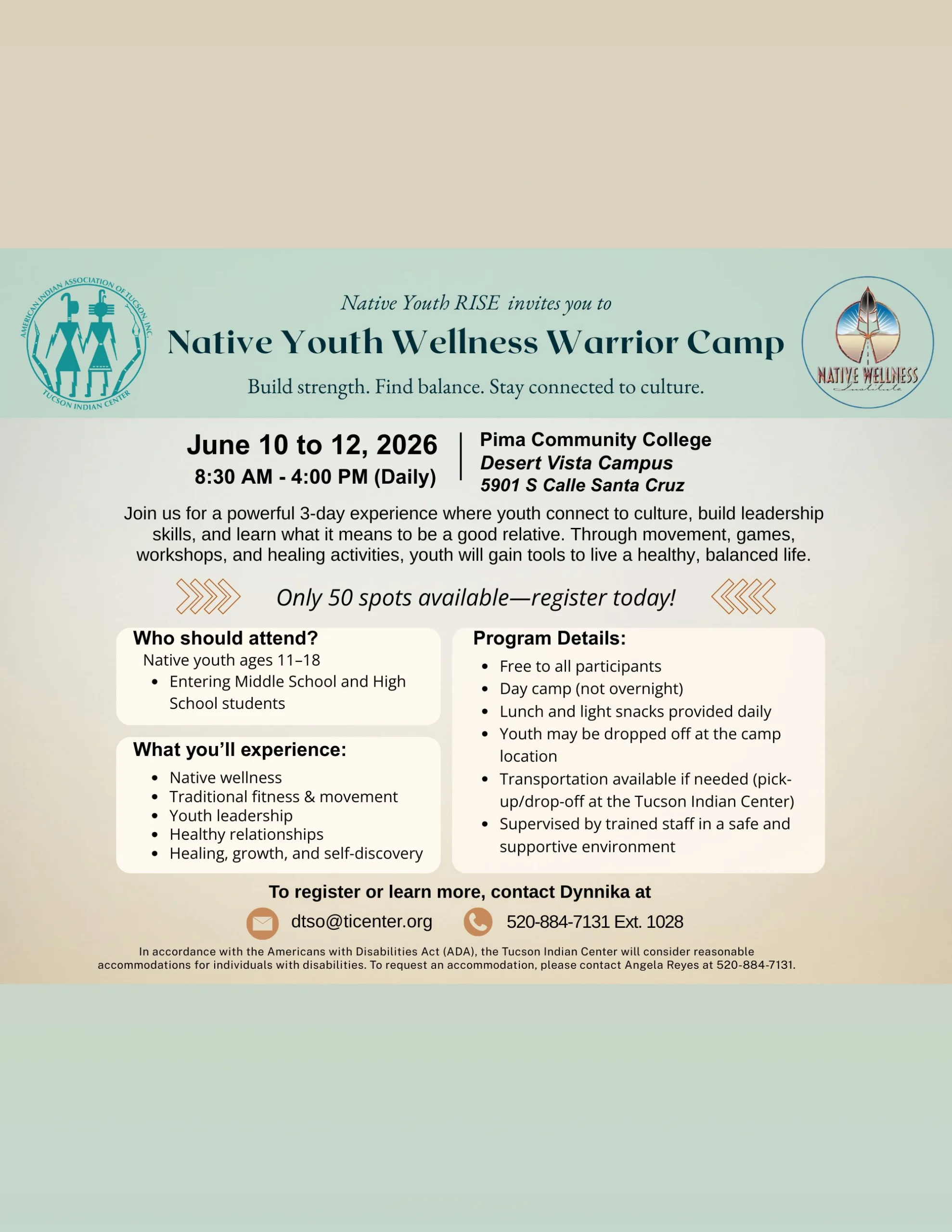 To enhance leadership, provide advocacy, deliver education, and strengthen the well-being of the people in the greater Tucson Area with emphasis on the Urban Native American Community.